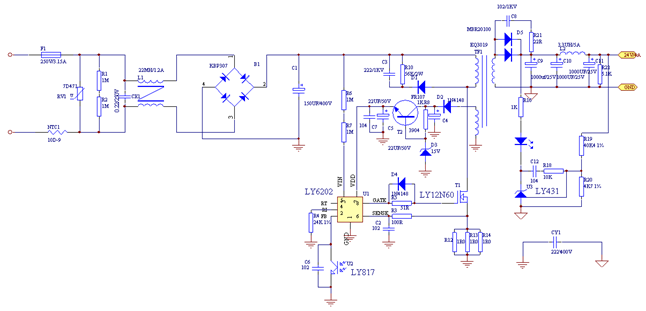 充電器適配器副邊反饋24V*4A=96W典型應(yīng)用電路圖