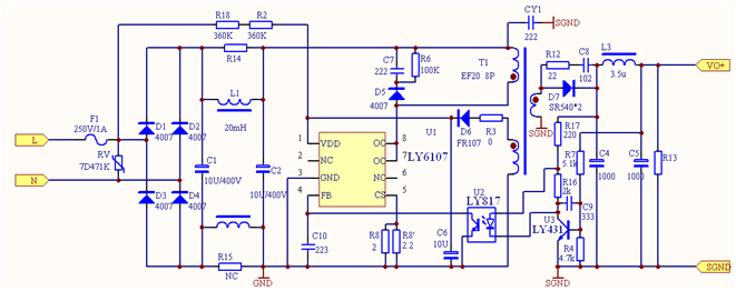 充電器適配器副邊反饋5V* 2A=10W典型應用電路圖