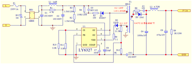 充電器適配器原邊反饋12V* 1A=12W典型應用電路圖